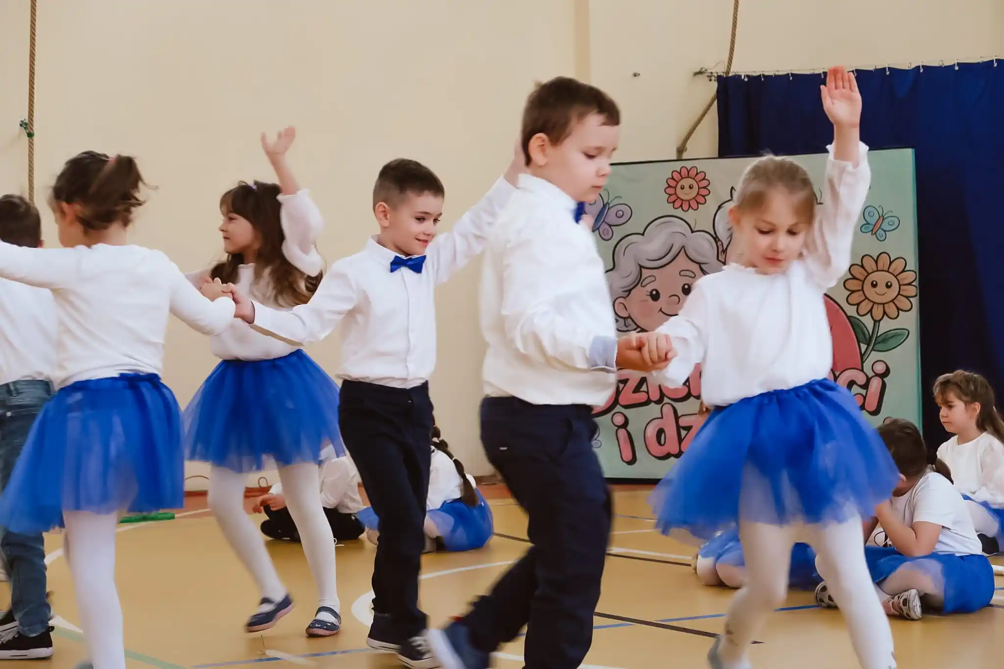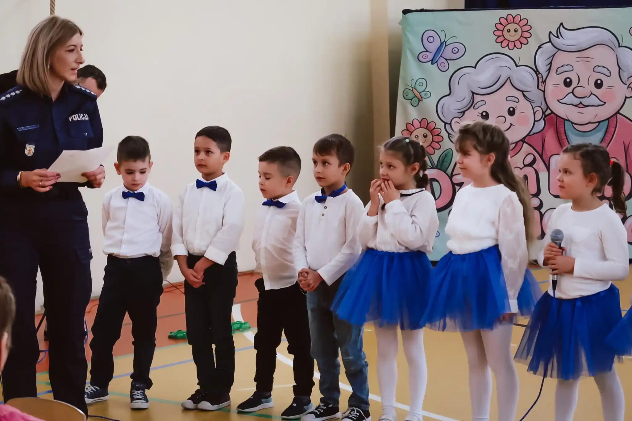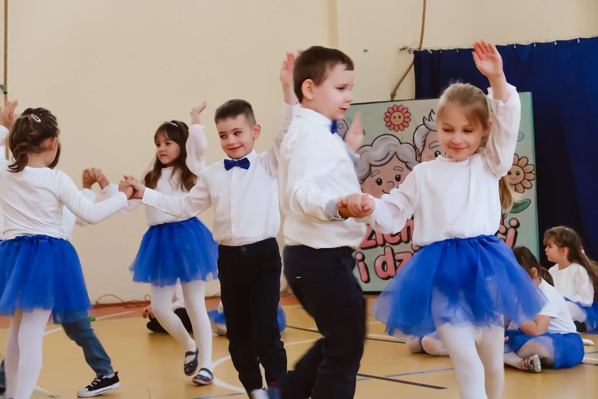 Występ urozmaicony był radosnymi piosenkami, recytacją wierszyków oraz układami tanecznymi, które wzbudziły wiele uśmiechów i wzruszeń wśród zaproszonych gości.