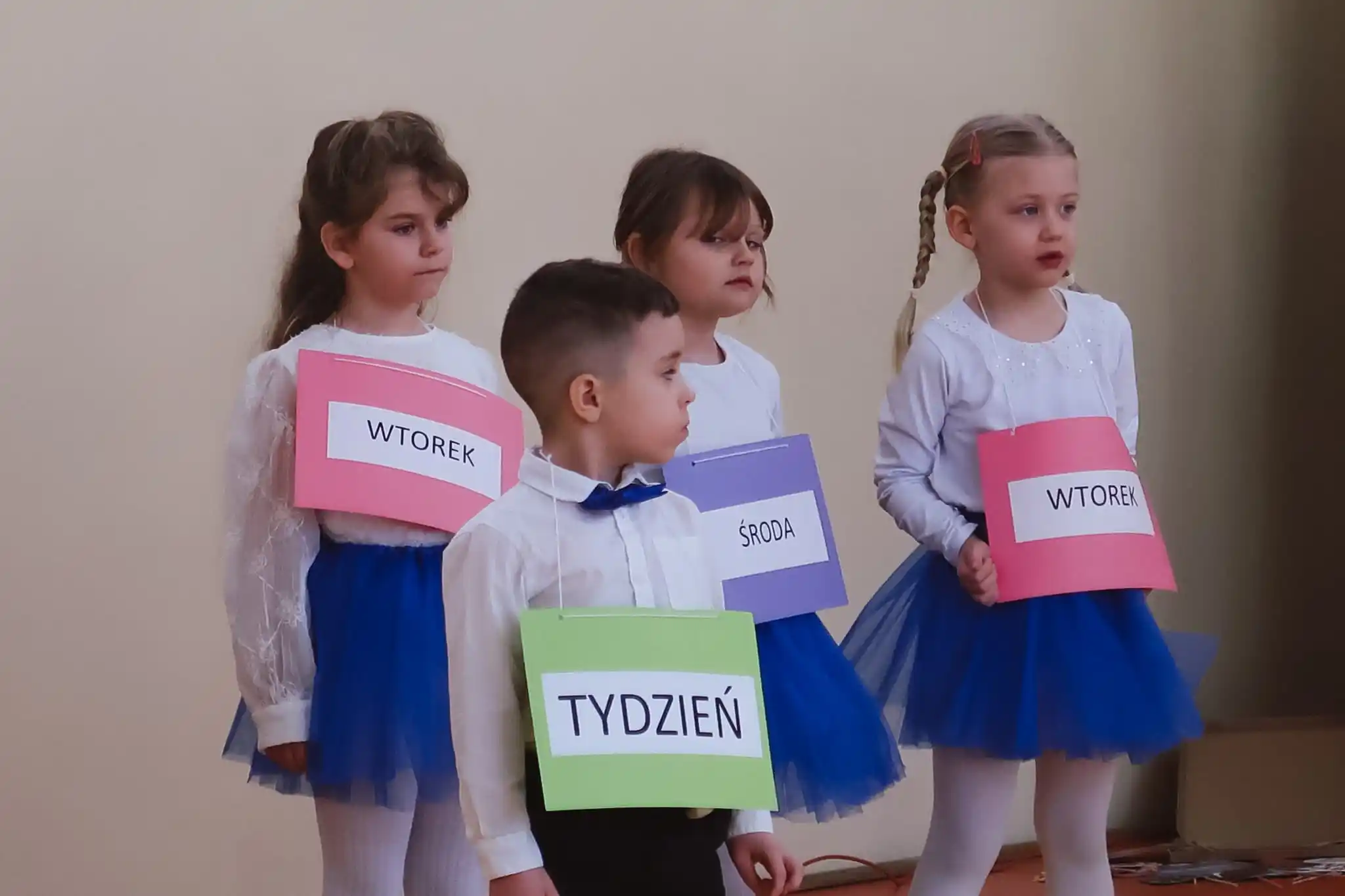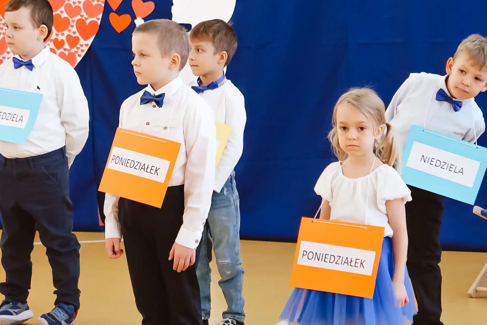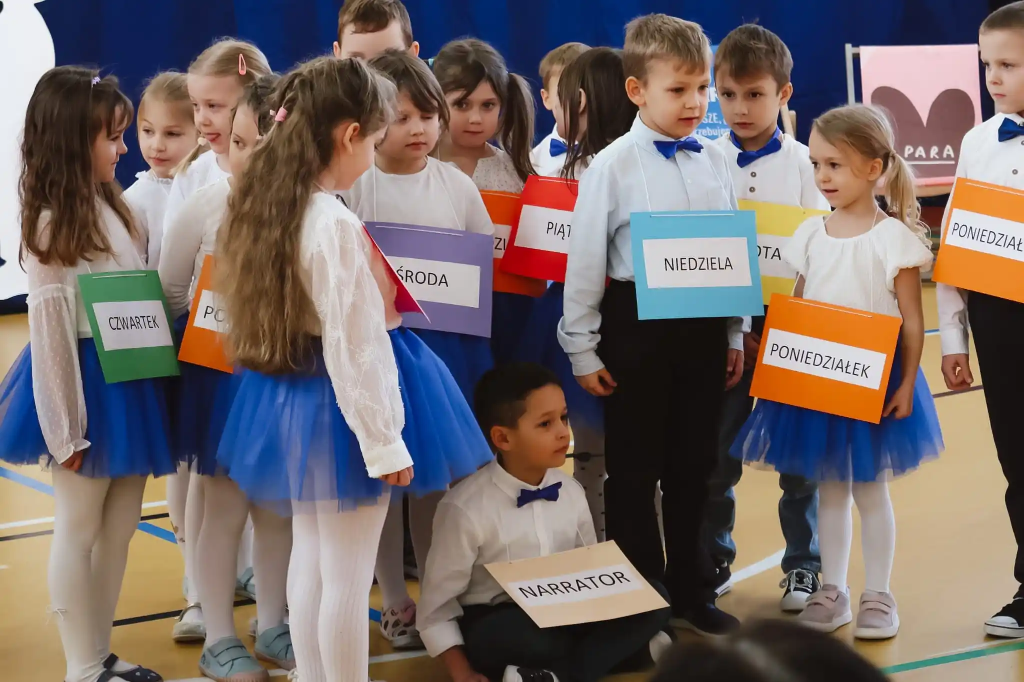 Mali artyści zaprezentowali inscenizację wiersza Jana Brzechwy pt. „Tydzień”, wcielając się w kolejne dni tygodnia.